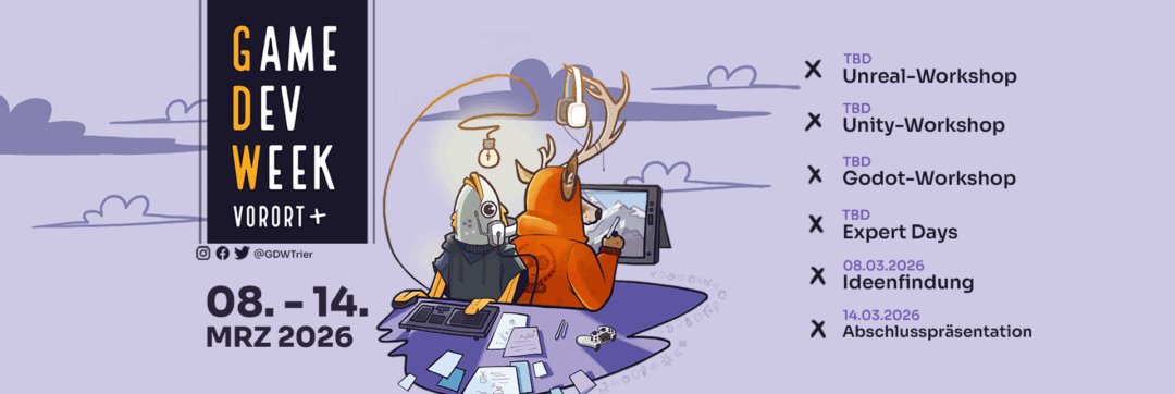 Der Name der GameDevWeek (GDW) ist Programm: die Teilnehmer finden sich in Gruppen zusammen und entwickeln innerhalb von einer Woche ein Videospiel.